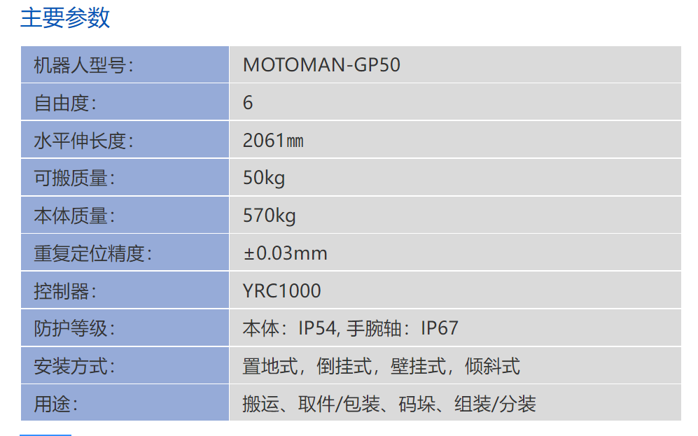 MOTOMAN-GP50安川YASKAWA機器人
